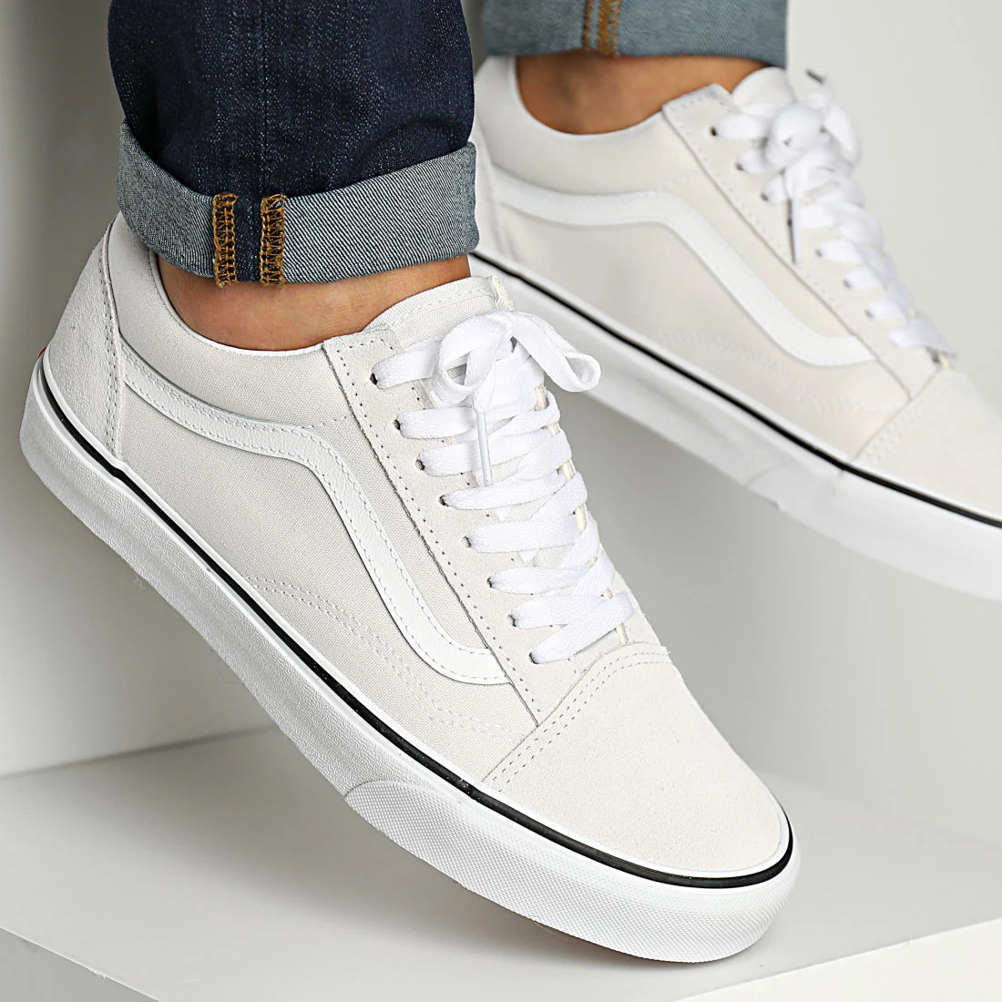• Classique de la sneaker skater en toile et cuir retourné